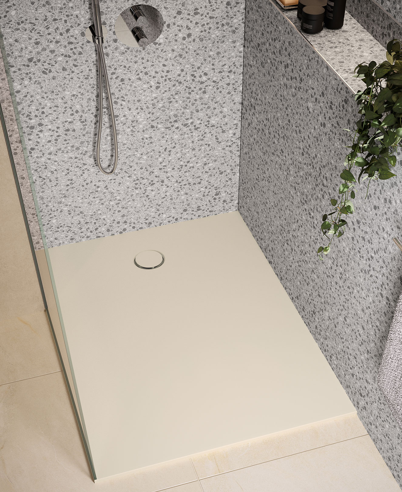 Extra flache Duschwanne aus Mineralwerkstoff