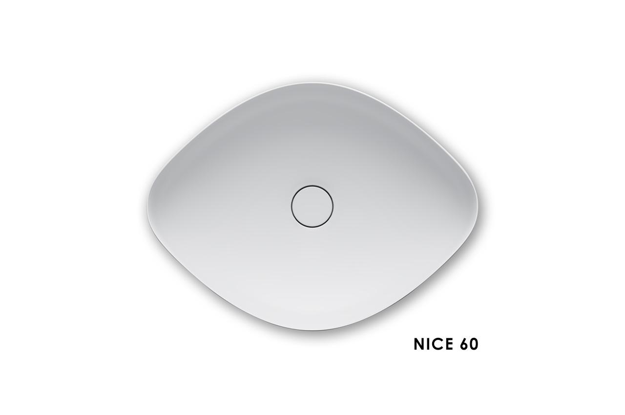 Filigrane Außenwände treffen auf eine softe, geschwungene Formensprache. Die Waschtische halten, was ihr Name verspricht. NICE: formschön, elegant und besonders sind die Aufsatzwaschtische dieser Serie.